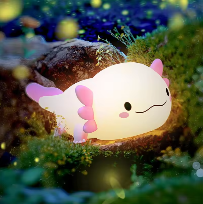 Este axolote tiene dos modos de luz suave: uno más tenue para crear un ambiente tranquilo y relajante, y otro más fuerte para iluminar sin perder la calidez. Ideal para acompañarte en tus momentos de descanso y ayudarte a dormir mejor y más placidamente.